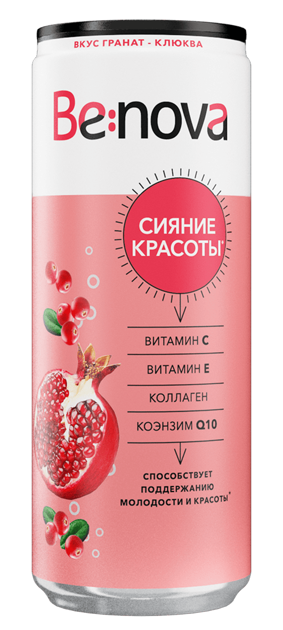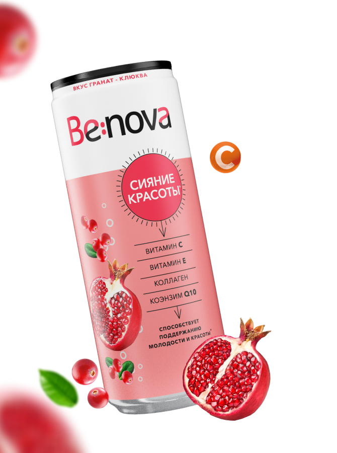 Каждая банка напитка Be:nova Сияние Красоты содержит 50% рекомендуемой суточной нормы потребления витаминов С, Е и цинка. Оптимальным выбором будет включить в рацион две баночки в течение дня.