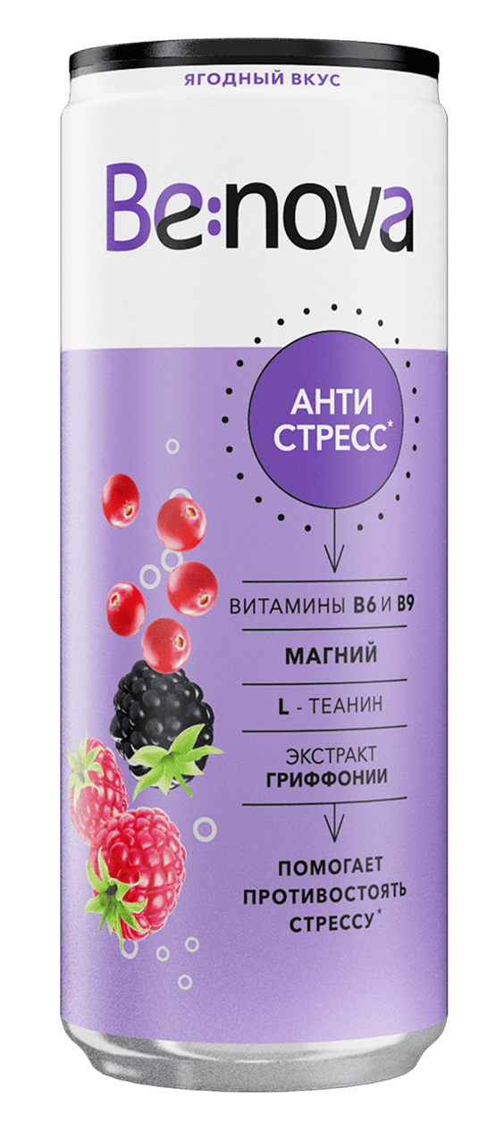 Каждая банка напитка Be:nova Анти Стресс содержит 50% рекомендуемой суточной нормы потребления витаминов В6, В9 и магния. Оптимальным выбором будет включить в рацион две баночки в течение дня.